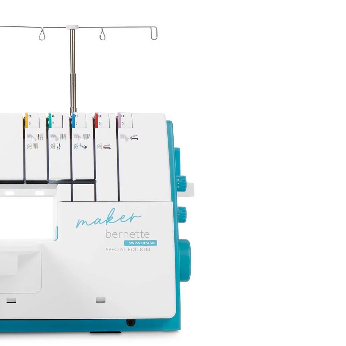 Для того, чтобы вы смогли максимально точно контролировать изделие в процессе шитья, оверлок укомплектован коленоподъемником для лапки, а за подсветку рабочей зоны отвечает сразу 5 светодиодов. Впервые в серии оверлоков Bernette используется технология микрорегулировки натяжения нитей (MTC) для достижения лучшего качества шва.